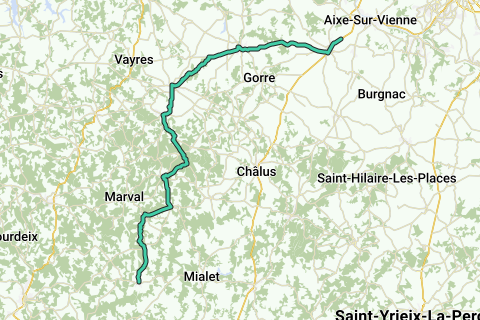 Vertrek uit: Séreilhac (ten zuidwesten van Limoges), via St. Laurent-sur-Gorre naar Oradour-sur-Vayres, LUNCH in Cussac;