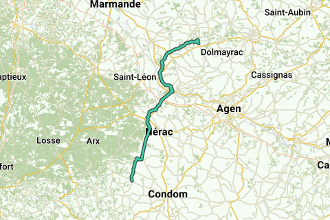 Via Vianne, Lavardac, Mézin naar Fourcès (prachtige ronde Bastide).