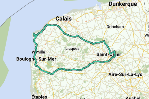 Ontdek alle voordelenDeze motorrit brengt je door het natuurpark Caps et Marais d'Opale. Je rijdt langs enkele belangrijke bezienswaardigheden van Pas-de-Calais, zoals Cap Blanc Nez en Cap Gris Nez, de Wateringues... Deze rit is puur genieten! Haar totale lengte bedraagd 155km en start in de gezellige stad Boulogne-sur-Mer.