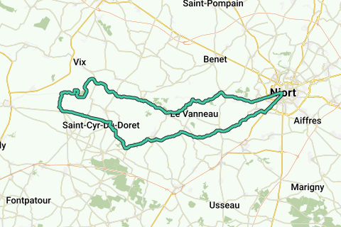 Marais Poitevin is een regionaal park ten noorden van La Rochelle. Ze krijgt door zijn vele kanaaltjes in een groene omgeving ook wel eens de naam 'groen Venetië'. Het is er heerlijk rustig fietsen doorheen de natuur, iets wat je ook zal merken tijdens deze 85km lange racefietstocht. De trip start en eindigt in Niort.