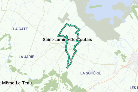 Een mooie route door Saint-Lumine-de-Coutais. Het asfalt, het beton en de kleine wegen, dat is wat je langs deze route zult vinden. De route begint bij de kerk.. Als de elementen je niet tegenwerken, is het een mooie wandeling.
