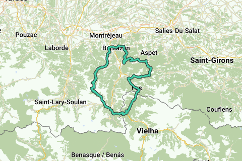 De route verlaat Bossòst en gaat zuidwaarts op de N-41, direct klimmend naar het Mirador de Bossòst, met mooie uitzichten over de stad en de vallei van de rivier de Garonne. Na het passeren van het Aran Park, het wildpark, steek je de grens over naar Frankrijk, terwijl je de Col de Portillon bereikt. De afdaling naar Saint-Mamet en verder naar Bagnères de Luchon, waar veel start- en finishplaatsen van de Tour de France zijn, is een brede, groenvriendelijke afdaling door dicht bos. Bij het verlaten van Bagnères de Luchon stijgt de weg weer, en we klimmen over 18 km naar de Port de Balès.