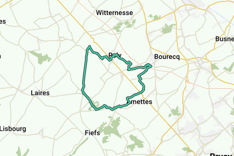 Je loopt richting Nédonchel en haar oostelijk gelegen zusterdorp Nédon. Hier verlaat je nog maar eens de GR (GRP) en kiest verder op voor het lokale wandelpad La Coqueline. Onverhard stap je langsheen een bosrand richting kerktoren van het inkoopstadje Amettes. Bij helder weer maken aan de noordoostelijke horizon Les Monts de Flandre hun opwachting. De Casselberg met de nabijgelegen bult van de Wouwenberg, voeren de heuvelrij aan.