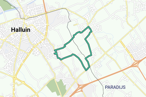 Lus van op Rekkem plaatse en grensovergang Belgie-Frankrijk met grenspalen tot Eglise Saint Alphone à Halluin en verzichten naar Lauwe.