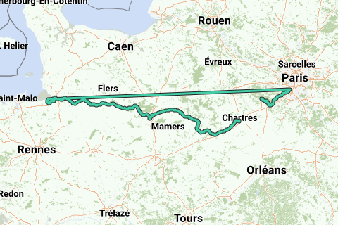 De Véloscénie fietsroute verbindt de hoofdstad Parijs en het departement Île de France met de baai van Mont Saint-Michel...via Chartres naar Normandië over een doorlopende, bewegwijzerde fietsroute.