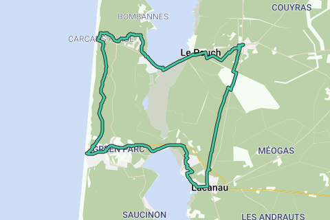 Lac d'Hourtin en Étang de Lacanau zijn twee meren in het prachtige regionaal natuurpark Médoc. Deze route brengt je langs beide meren en de uitgestrekte kustlijn. Onderweg passeer je ook enkele leuke & populaire kustdorpjes zoals Lacanau Plage & Carcans Plage. De route heeft een lengte van 50km.