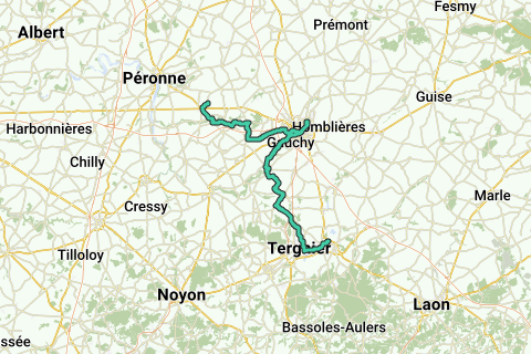 Onderdak in: Trefcon, Etreillers, Saint Quentin, Tergnier (zie POI’s en waypoints op de kaart)