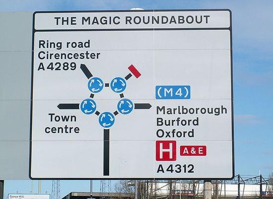 Een magische rotonde is een rotonde ontwikkeld door het Britse Transport research laboratory om de problemen van congestie bij rotondes met veel zijwegen te ondervangen.
