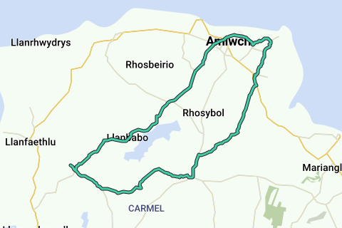 Deze route loopt door het NO-gedeelte van het Anglesey Copper Trail. Het begint bij llynnon Mill (gratis parkeren, maar wees gewaarschuwd, de parkeerplaats is om 16.30 uur op slot).