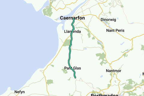 Van Caernarfon naar Bryncir op Lon Las Eifion, daarna nog een beetje verder naar Bryncir Garden Centre (verfrissingen) en terug. Als je dit maar één keer doet, zou ik voorstellen van Bryncir Garden Centre naar Caernarfon te gaan, omdat het mostly (geleidelijk) omlaag gaat in deze richting. Perfect voor junior fietsers. 12,5 mijl heen en terug.