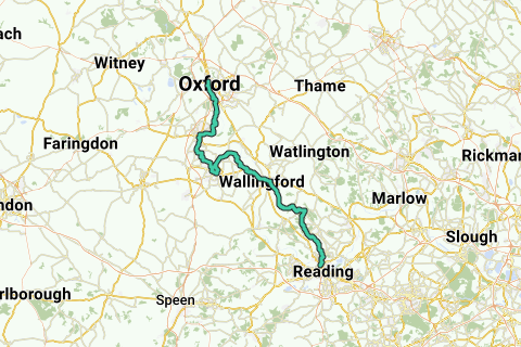 Volgt NCN 5 exact, zelfs waar dit off-road gaat. Er zijn alternatieven op de weg bij Didcot, Abingdon en andere plaatsen, gemarkeerd op de kaartwebsite van Sustrans als "lokale route".