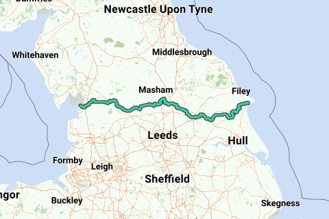 Weg der rozen van Morecambe naar Brighton door de graafschappen Lancashire en Yorkshire. Deze zee-tot-zee route is gebaseerd op het Sustran Nationaal Fietsknooppunt.