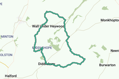 Deze route bevat de mooiste wegen om Wilderhope Manor te bereiken. Er is weinig (geen) kans dat je auto's langs deze route ziet. Geniet van de ervaring!