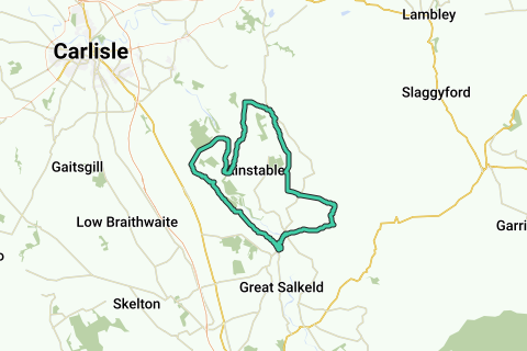 Het overbrengen van de groene boodschap? Gebruik het openbaar vervoer (treinstation Lazonby en Kirkoswald) om deze fietstocht te bereiken. Een zware rit. Houd een oogje in het zeil voor een koffiestop. De kans dat je auto's tegenkomt langs deze route is klein (geen). Volledig verharde wegen langs deze route. Maak je geen zorgen. Er zijn niet veel plekken om halverwege een drankje te doen langs deze route, maar er zijn er enkele. Bewonder de adembenemende uitzichten langs deze route, waaronder Renwick.