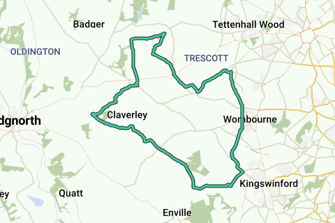 Een koffiestop is geen onnodige luxe. Het wordt een zware tocht. De groene boodschap overbrengen? Gebruik het openbaar vervoer (station Penn Halt) om deze fietstocht te bereiken. Er is weinig (geen) kans dat je auto's langs deze route zult zien. Een must-see attractie langs deze route: Trysull & Seisdon. Deze route is behoorlijk heuvelachtig.