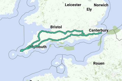 Dover - Cornwall reisroute 2019