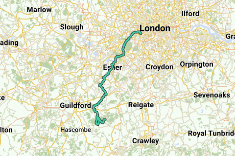 Bij terugkeer naar Londen vermijdt de route voornamelijk hoofdwegen.