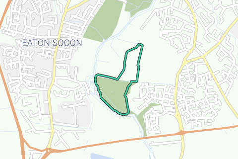 Wandel door een weelderig, groen landschap op de Pocket Parkrun (Zomerroute) nabij het kasteel van Eaton Socon. Deze gemakkelijke 2,4 kilometer lange lus brengt je langs de serene wateren en biedt een verfrissende ontsnapping aan het stedelijke leven. Je zult onderweg genieten van het uitzicht op de Ernulf Academy en Eynesbury Rovers F.C., terwijl je omringd bent door de natuur. Het grootste deel van het pad is onverhard, wat je verbinding met de buitenlucht versterkt terwijl je door deze pittoreske omgeving loopt. Perfect voor een ontspannen jog of een rustige wandeling, deze route belooft een heerlijke ervaring in een vredige omgeving.