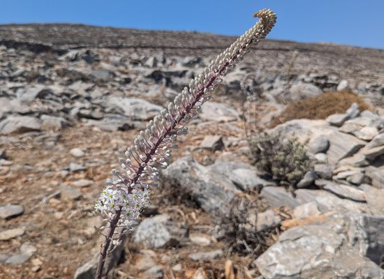 Langs het pad en in de phrygana rondom Asfontilitis tref je heel wat van deze bloemen aan: asphodelus. Deze bloem is behoorlijk toxisch en wordt daarom met rust gelaten door de vele geiten. De bloem komt daarom dikwijls voor in overbegraasde gebieden zoals rondom Asfontilitis. Bij super-dominantie spreekt men over een asphodelussteppe. Het biedt wel mooie beelden in het voorjaar. De plaatsnaam Asfontilitis zou afgeleid zijn van deze plant.