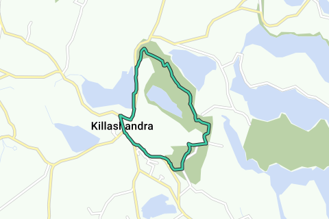 De wandeling begint bij Town Lake (plaatselijk bekend als de Strand) langs de R201 weg buiten Killeshandra. Loop 500m langs de oever van het meer en volg het verhoogde pad langs de Belturbetweg. Steek de weg voorzichtig over bij het gemarkeerde punt, ga door de ingang en volg het pad het bos in.