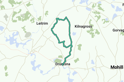 Deze route leidt je over rustige wegen van Drumsna naar het kleine dorpje Effrinagh en verder naar Sheemore. Een klim van tien minuten naar de top van Sheemore is de prachtige uitzichten op Leitrim, Sligo en Roscommon meer dan waard. De terugweg is een mooi heuvelachtig pad door Kilclare voor meer uitzicht op de omgeving en terug naar Drumsna.