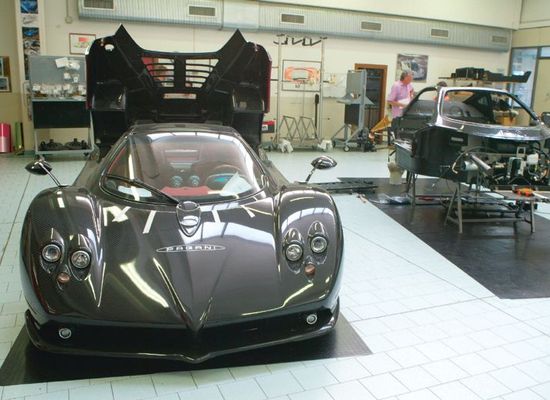 Pagani Automobili Modena is van Horacio Pagani en komt uit Argentinië. Het atelier ligt in het onaanzienlijke San Cesario sul Penaro. De jaarlijkse productie bedraagt zo'n twintig stuks. Daar wordt, in de woorden van Pagani, 'een ingewikkelde zoektocht gemaakt naar eenvoudige oplossingen'.