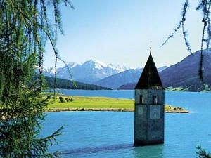 Bij de Reschenpass komt men vanuit Oostenrijk het Italiaanse Alto Adige (Südtirol) binnen. Het dal loopt langs het stuwmeer van Resia met de kerktoren van Curon die nog boven water uitsteekt tot Malles Venosta in noord-zuidrichting.