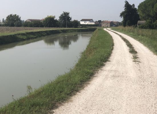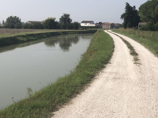 Langs dit kanaal loopt een fietspad dat je gerust kunt catalogeren als "strade bianche"