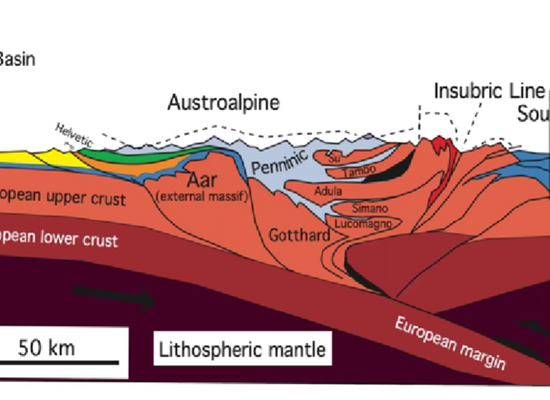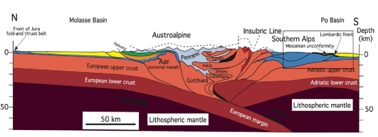 Door subductie werd de Europese plaat onder de Afrikaanse plaat geduwd. Dit proces duurde bijna 100 miljoen jaar. De oerzee (Thetys) die ertussen lag, werd verplaatst en de sedimenten die daar werden afgezet, zijn nu terug te vinden in de bergketens. Aan het einde van dit proces botsten de twee continentale platen op elkaar en ontstonden de huidige Alpen met een snelheid van maximaal 3 mm per jaar. Als de bergen tijdens de gehele plooiing van de Alpen niet door wind en water waren geërodeerd, en door de zwaartekracht niet teruggeduwd zoy worden naar het centrum van de aarde, zouden de Alpen nu ongeveer 40 km hoog zijn. Ondertussen groeien de Alpen nog steeds met maximaal 1 mm per jaar. De Alpen zijn een van de jongste bergketens ter wereld.