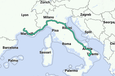<p><a class="routeYou_embed" href="https://app.routeyou.com/nl-it/route/view/10354037?utm_source=embed&utm_medium=article&utm_campaign=routeshare&navigation=external" title="Avignon - Policoro - RouteYou" target="_blank"><img src="https://image.routeyou.com/embed/route/960x670/10354037-nl@2x.png" style="width: 100%; height: auto;" alt="Avignon - Policoro"></a></p>