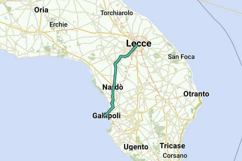 <p><a class="routeYou_embed" href="https://app.routeyou.com/nl-it/route/view/14526463?utm_source=embed&utm_medium=article&utm_campaign=routeshare&navigation=external" title="Lecce - Gallipoli - RouteYou" target="_blank"><img src="https://image.routeyou.com/embed/route/960x670/14526463-nl@2x.png" style="width: 100%; height: auto;" alt="Lecce - Gallipoli"></a></p>