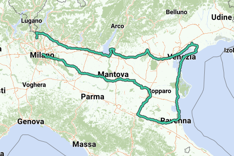 Milaan--Ferrara-Bologna-Ravenna-Venetië-Garda meer-Como-Vertemate