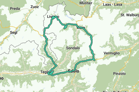 Ontdek alle voordelenDeze versie van de Gavia Tour begint en eindigt in Tirano. Hij passeert Livigno, Santa Caterina Valfurva en de Passo Gavia en Aprica.