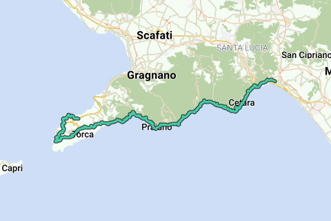 Discover all benefitsDeze route neemt je mee langs de geweldige Amalfikust. De Amalfikust of Costiera Amalfitana is een kuststrook aan de zuidelijke kust van de Golf van Salerno aan de Tyrreense Zee, gelegen in de provincie Salerno in Zuid-Italië. De Amalfikust is een populaire toeristenbestemming die jaarlijks duizenden toeristen aantrekt. In 1997 werd de Amalfikust vermeld als UNESCO-werelderfgoed.