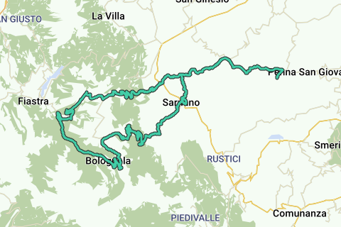 Geweldige route om te beginnen vanuit richtingen Gualdo of Sarnano met twee belangrijke klimaten: Montioli dalla Laminox (8,5 km @ gemiddeld 9%) en Bolognola Maddalena (12 km @ gemiddeld 6%). 100% geverifieerde route op een racefiets. 2 km zijn grindwegen die OK zijn "Strade Bianche" (tussen km 10,4 en 12,4 van deze route) (juli 2018). Daal voorzichtig af na de klim van Montioli dalla Laminox (juli 2018) omdat de weg in slechte toestand verkeert in sommige secties. Dit is een toproute met prachtige uitzichten!