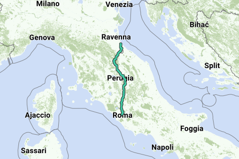 hoofdroute naar Rome
