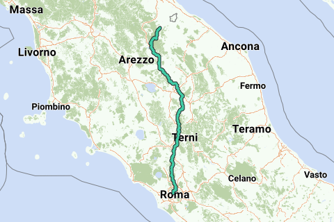 hoofdroute naar Rome