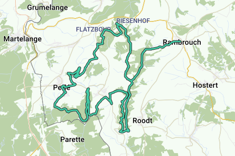 De VTT-route in Luxemburg loopt van Rambrouch over een afstand van 35 kilometer. De VTT-route doorkruist de dorpen Holtz, Perl, Bondorf en Klein-Elcheroth en biedt schilderachtige stukken langs de Belgisch-Luxemburgse grens. Holtz, een pittoresk dorp, herbergt de Holtzer Kerk, gebouwd in 1692, die voor het eerst werd vermeld in een lijst van het Aartsbisdom Trier in 1330. De route biedt een afwisselend landschap met glooiende heuvels en dichte bossen, waardoor het een ideale keuze is voor natuurliefhebbers.