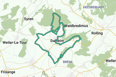 De mountainbikeroute Pistes_VTT in Dalheim heeft een lengte van 23 kilometer. Deze route slingert door de Luxemburgse zandsteenregio en biedt spectaculaire uitzichten op het omliggende landschap. Fiets door schilderachtige bossen en langs glooiende heuvels, waar je de rust en schoonheid van de natuur kunt ervaren. Geniet van de variatie in het terrein en de indrukwekkende panorama's die deze regio te bieden heeft!