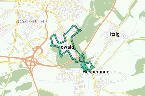 De wandelroute in de regio Hesperange Noord biedt een prachtige mix van natuur en cultuur. Terwijl je door de pittoreske landschappen wandelt, kom je langs weelderige bossen en open velden die uitnodigen tot verkenning. De route leidt je ook door charmante dorpjes, waar je kunt genieten van de lokale architectuur en gastvrijheid. Dit gebied is perfect voor liefhebbers van het buitenleven, met een verscheidenheid aan flora en fauna die je tijdens je tocht kunt ontdekken.