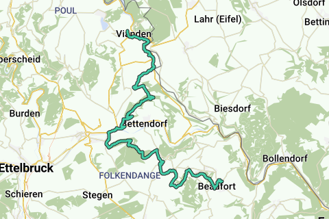 De wandelroute Beaufort-Vianden biedt een adembenemend uitzicht op de groene heuvels en dichte bossen van de Ardennen. Langs de route ontdek je schilderachtige dorpjes en historische kastelen die het landschap sieren. De afwisselende terreinen, van glooiende paden tot smalle bospaden, nodigen uit tot een avontuurlijke ervaring in de natuur. Geniet van de rust en de schoonheid van dit ongerepte gebied terwijl je de frisse lucht inademt.