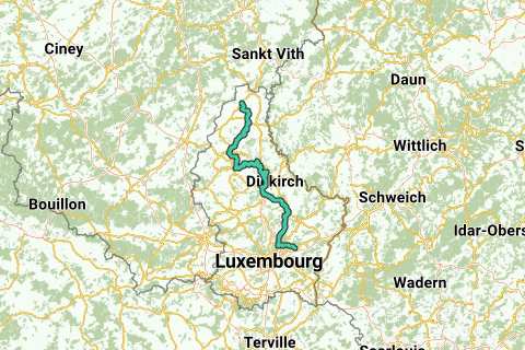 Een aantal mooie straten en fietspaden in Combat de Clervaux. Bijna het gehele traject is afdalend en heuvelachtig, met enkele steile hellingen. Wie van water houdt, zal op deze route zijn hart ophalen. De Wiltz gehoorzaamt u met uw vinger en uw oog. Deze route leidt langs een bos en wordt in de herfst aanbevolen. Ontspan tijdens deze fietstocht in de natuur. Geniet van de natuur in het bos (Grünewald) en verken de mooie fietspaden in de omgeving. Geef jezelf over aan de geschiedenis op deze route als je het kasteel (Clervaux_chateau) bekijkt. Deze route krijgt zeker een 10 uit 10!