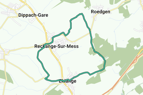 Leuk u te ontmoeten: Reckange-sur-Mess. Deze route is geasfalteerd en geschikt voor een kinderwagen. Deze tour valt samen met een GR-pad.