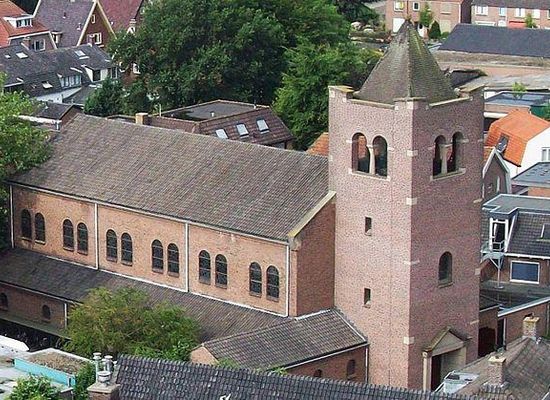 De vorige rooms-katholieke kerk stamde uit 1819 en werd ook wel 'de kathedraal boven de rivieren' genoemd. Deze kerk had in de Tweede Wereldoorlog erg te lijden gehad onder de beschietingen die Nijkerk tegen het einde van de oorlog te verduren kreeg. Na de oorlog werd besloten de beschadigde kerk af te breken en een nieuwe te bouwen.