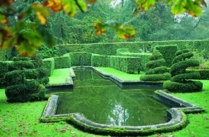 Voorgevel begin 17e eeuw. Bij het kasteel ligt een fraai park met vier eeuwen tuinarchitectuur. Kasteel niet te bezichtigen, de tuinen wel.