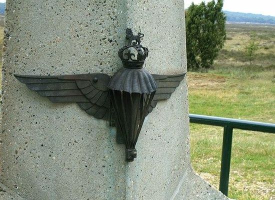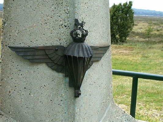 Het monument is een betonnen zuil van drie meter hoog. Boven op de zuil staat een koperen adelaar met gespreide vleugels. Op de zijkanten van het monument zijn emblemen aangebracht. Op het eerste embleem staat een gevleugelde en gekroonde parachute afgebeeld, op het tweede embleem het wapen van de King's Own Scottish Borderer en op het derde embleem een beeltenis van een paarse Pegasus. Op de voet van de heuvel waar het monument zich bevindt staat een natuurstenen plaquette. Een kleine 15 meter naast de zuil ligt een zwerfkei met het opschrift: LUCHTLANDING 17_18 SEPT.1944. Het monument is van de hand van kunstenares Melanie M. Heuff - von Oven.