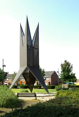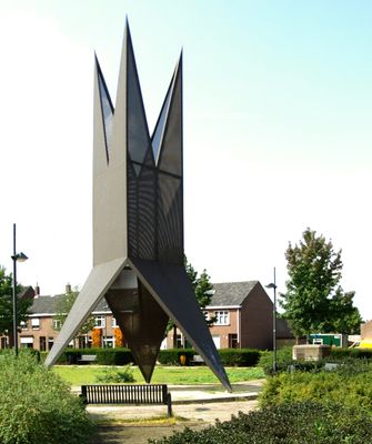 In de vijf paden die leiden naar dit werk liggen tegels met citaten uit dit werk van Nijhoff. Boven het cirkelvormig terrazzo- basement staat lichtvoetig op drie poten een aan zowel de middeleeuwse gotiek als aan de hedendaagse ruimtevaart verwante vorm.