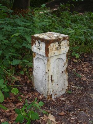 Zuid-Holland was de enige provincie waar gietijzeren kilometerpalen werden toegepast. Van deze palen zijn er nog slechts twaalf overgebleven waaronder twee (bij 2 km en de op de foto getoonde paal bij 3 km) langs de Leidsestraatweg door het Haagse Bos, die werden gegoten bij de Haagse ijzergieterij "De Prins van Oranje" uit de 19e eeuw.