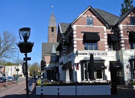 Naast de kerk bevindt zich het markante, in 2015 geopende Grand Café Brand & Van Zanten.