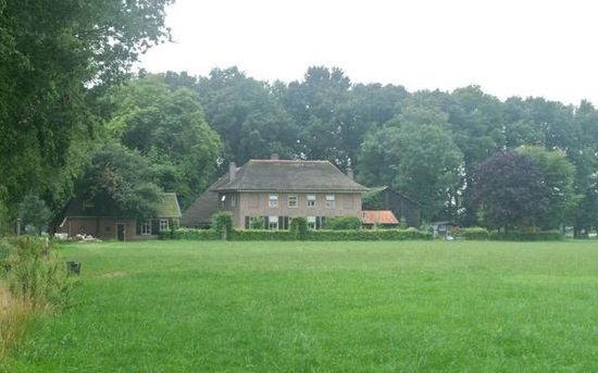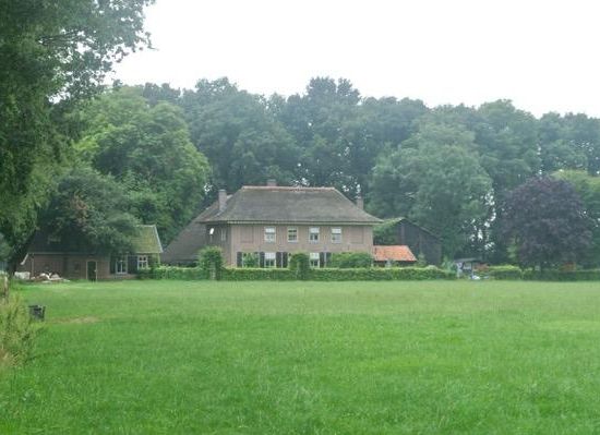 Een opvallende monumentale boerderij die in geen enkel opzicht te vergelijken valt met de gebruikelijke stijl van boerderijen in De Gelderse Vallei. Deze zou je eerder in de Betuwe verwachten. De boerderij staat hier sinds 1855 en werd gebouwd op de plaats van zijn voorganger die door brand verloren ging.